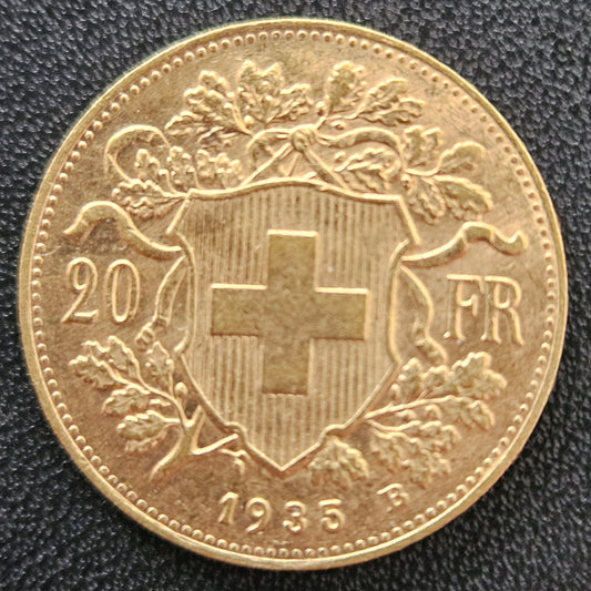 20 Franken Schweiz "Vreneli" Jahrgang 1935 B ohne L